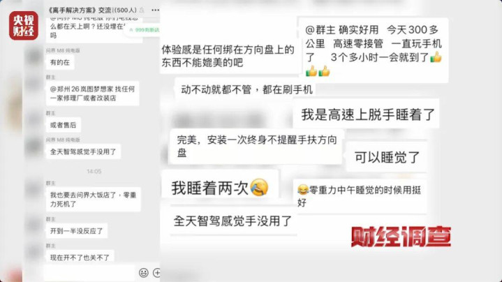 记者以车主的身份成功加入多个联络群:离手方案群、《离手解决方案》交流群、离手交流《3群》,记者发现群成员多到500人,少则100多人,群成员不仅频繁地分享效果视频,聊天也十分活跃。